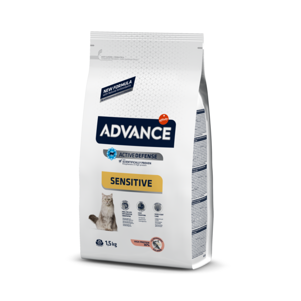 ADVANCE Sensitive jest kompletną i zbilansowaną karmę specjalnie opracowaną dla kotów z nadwrażliwością pokarmową.
