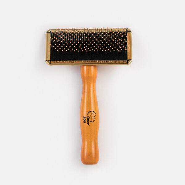 Dzięki stalowym, lekko wygiętym igłom doskonale sprawdzają się do rozczesywania splątanej sierści, kołtunów oraz wyczesywania martwego podszerstka. Gumowa poduszka amortyzuje nacisk dzięki czemu szczotki lepiej rozczesują włos i nie podrażnia skóry zwierzęcia. Plastikowe kulki na końcach igieł zabezpieczają dodatkowo przed podrażnieniem skóry. Ergonomiczny, drewniany uchwyt ułatwia rozczesywanie.